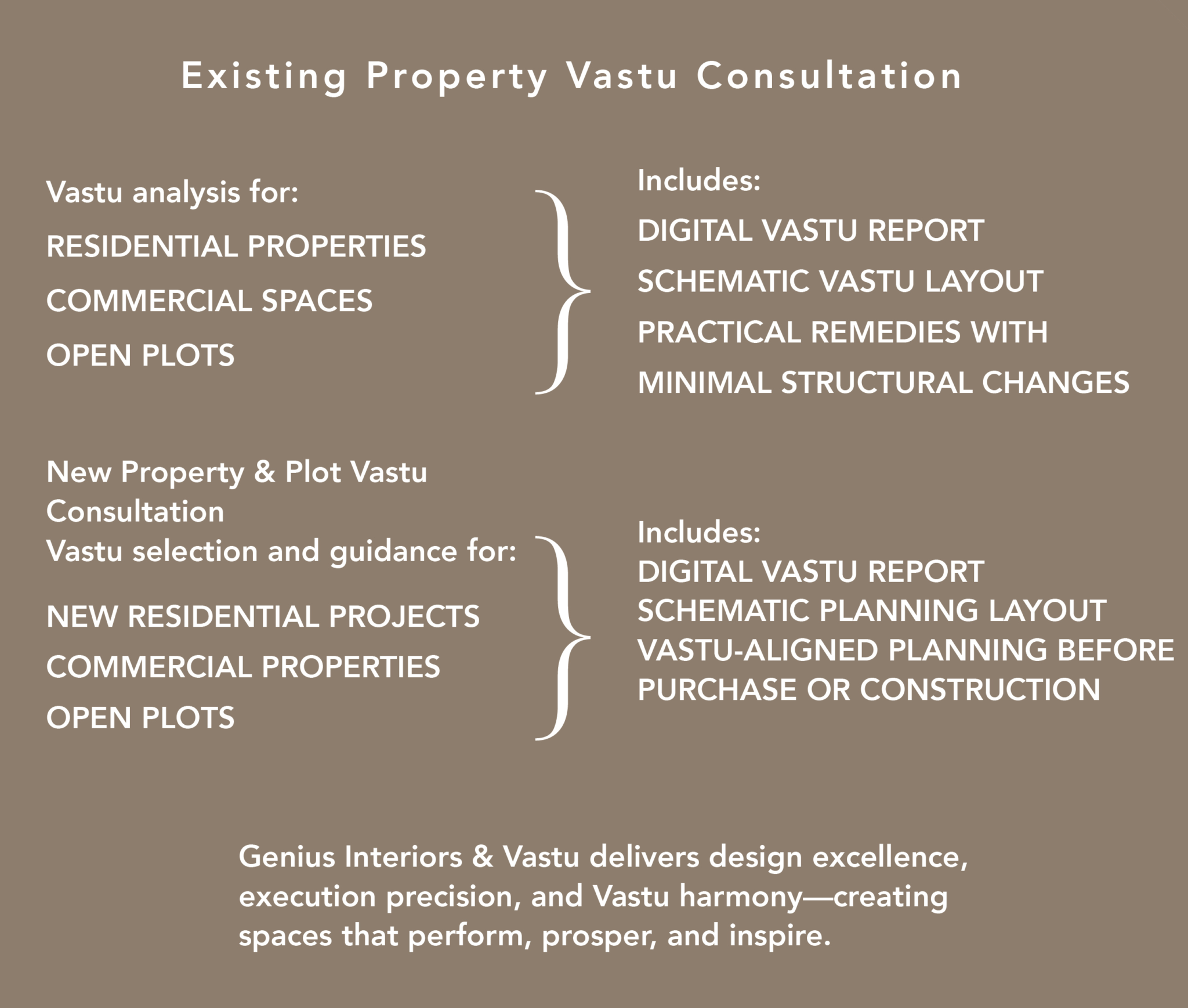Genius Interiors & Vastu stands for creativity, precision, professionalism, and positive energy—designing spaces that inspire success and harmony.